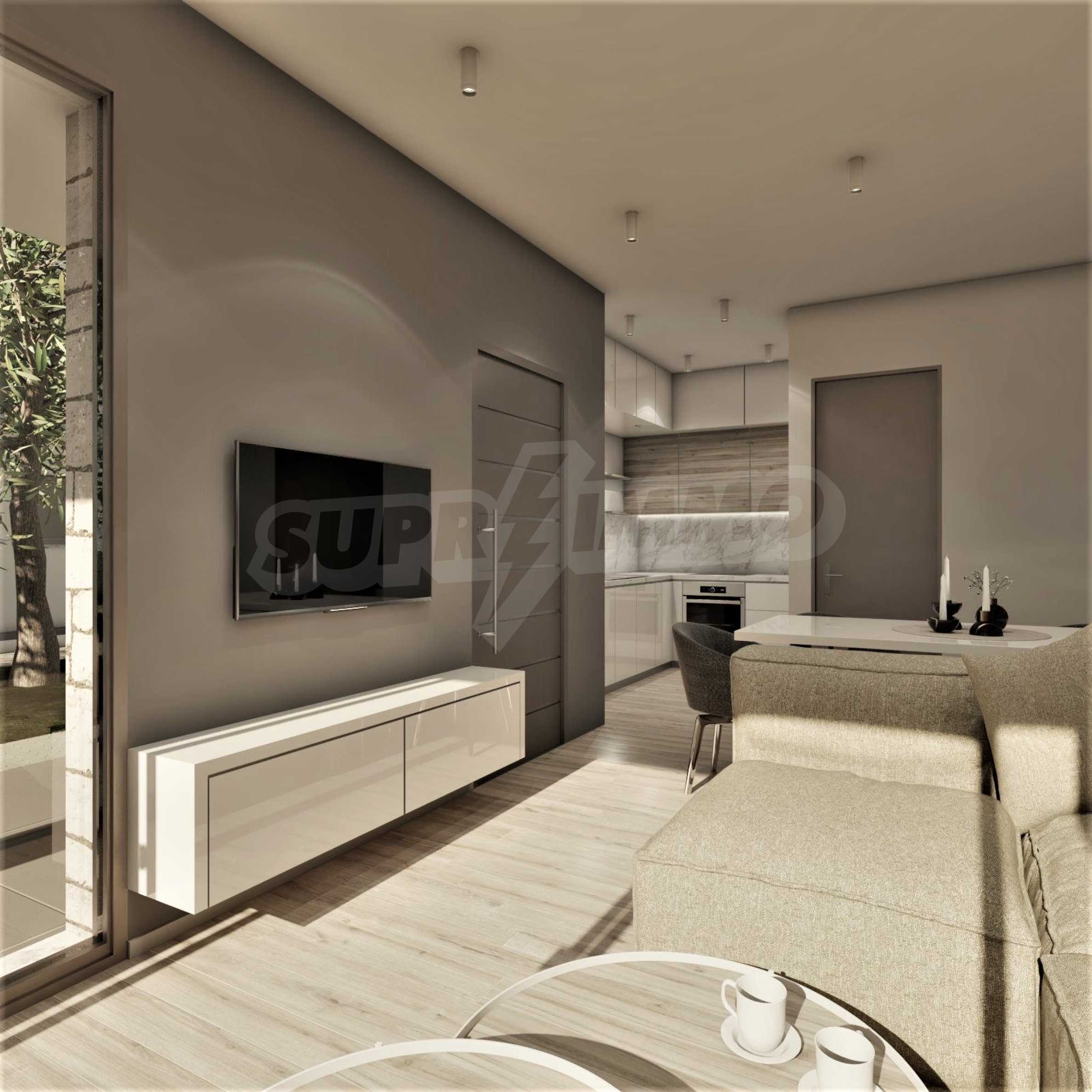 ● Wohnzimmer mit Küchenzeile und Essbereich;