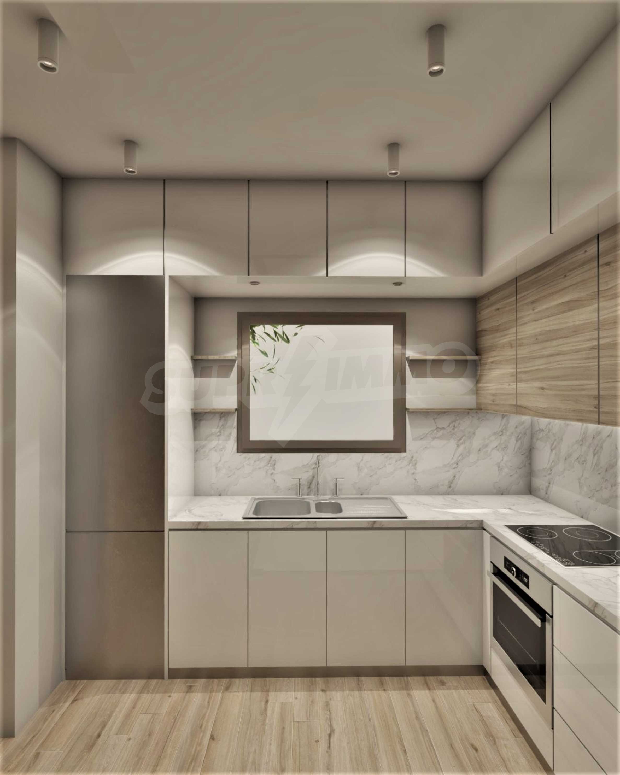 ● Wohnzimmer mit Küchenzeile und Essbereich;