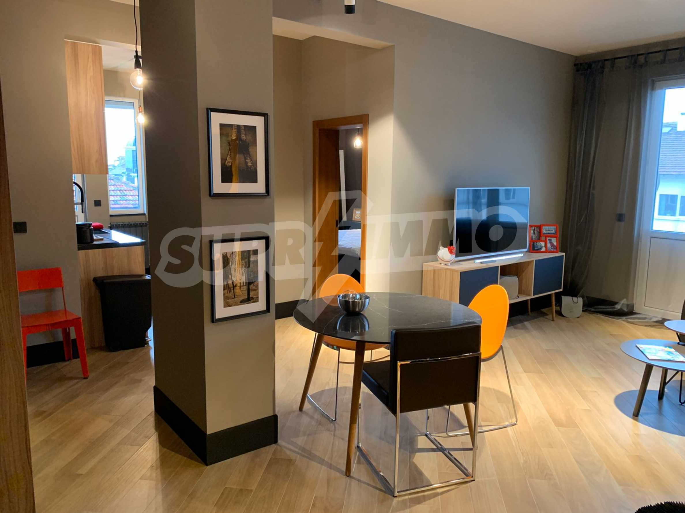 Wir präsentieren Ihnen eine neue, renovierte Einzimmerwohnung im idealen Zentrum von Sofia mit einem Parkplatz im Innenhof – am Patriarch-Evtimiy-Boulevard, gegenüber dem Nationalen Kulturpalast.