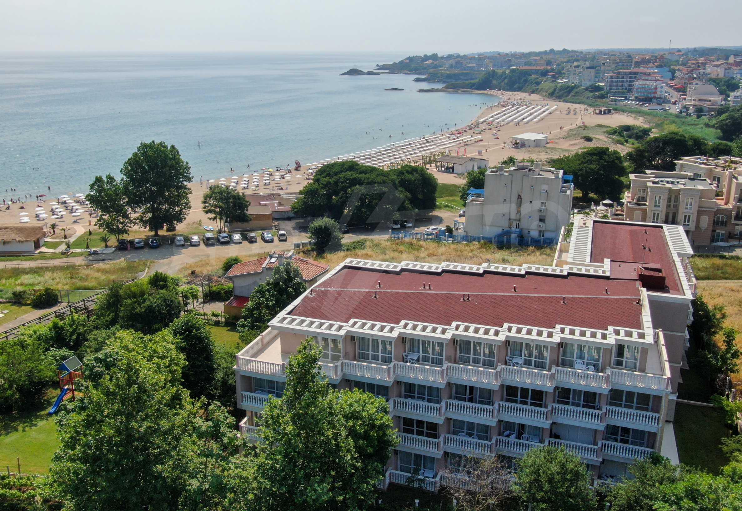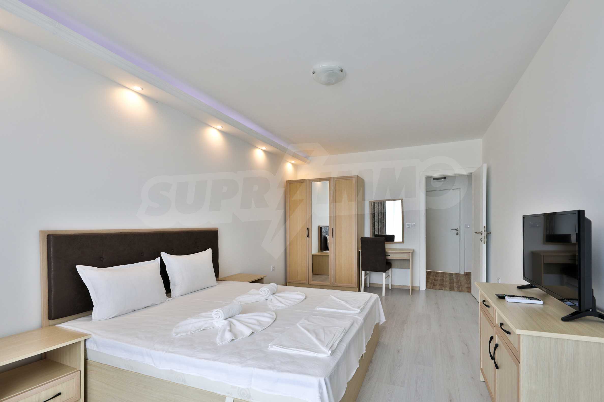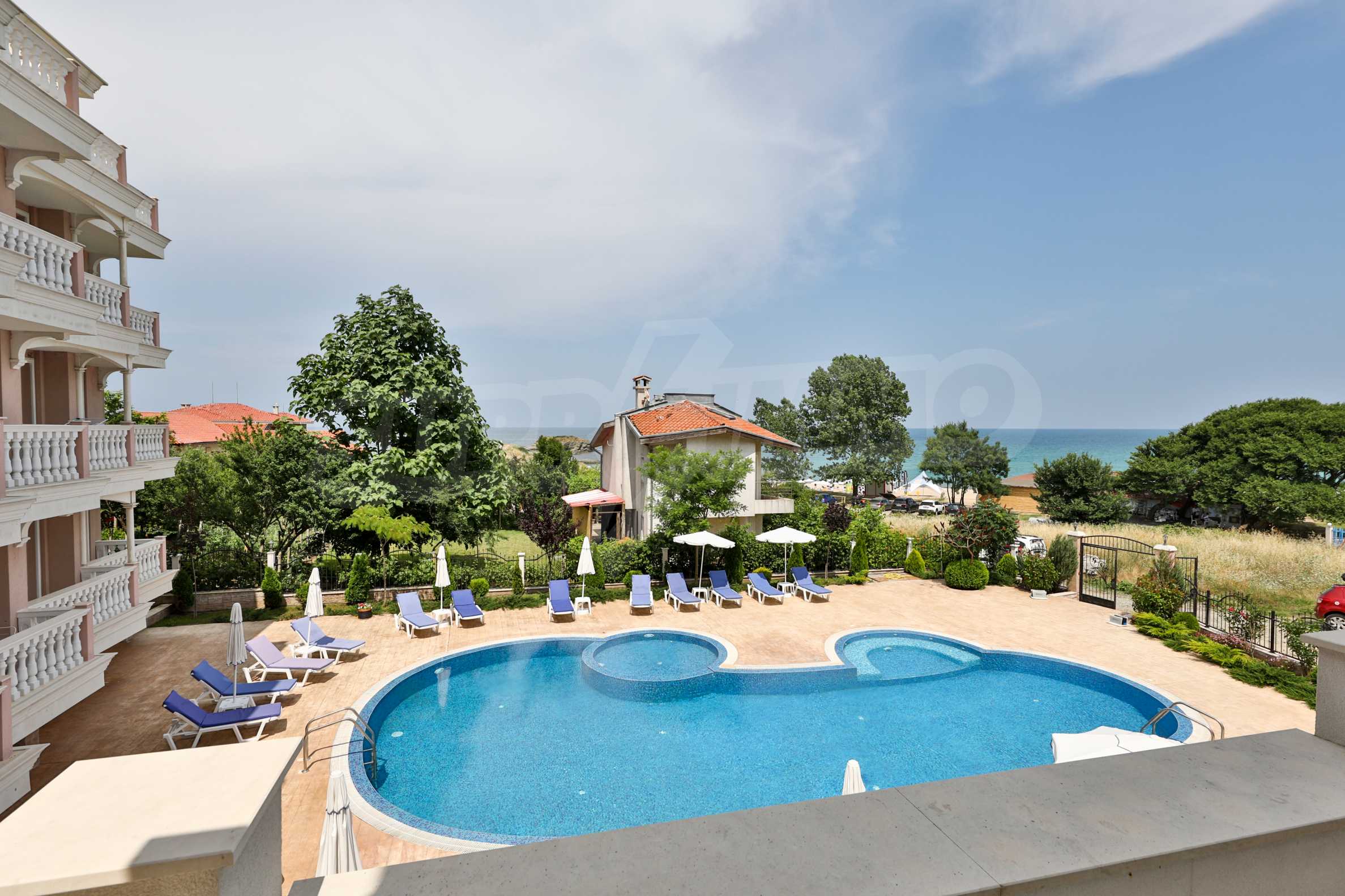 Das Gebäude zeichnet sich durch seine raffinierte und elegante Architektur mit großzügigen Terrassen mit Balustraden aus. Es ist auf die Meeresküste ausgerichtet und bietet unglaubliche Ausblicke auf das Meer und den Strand. Es gibt alle notwendigen Annehmlichkeiten für einen angenehmen Urlaub auf dem Territorium: Schwimmbad, Tiefgarage und Restaurant, Sicherheit, Videoüberwachung und Rezeption.