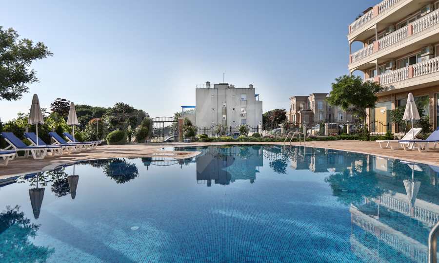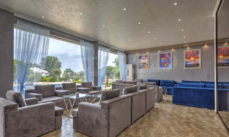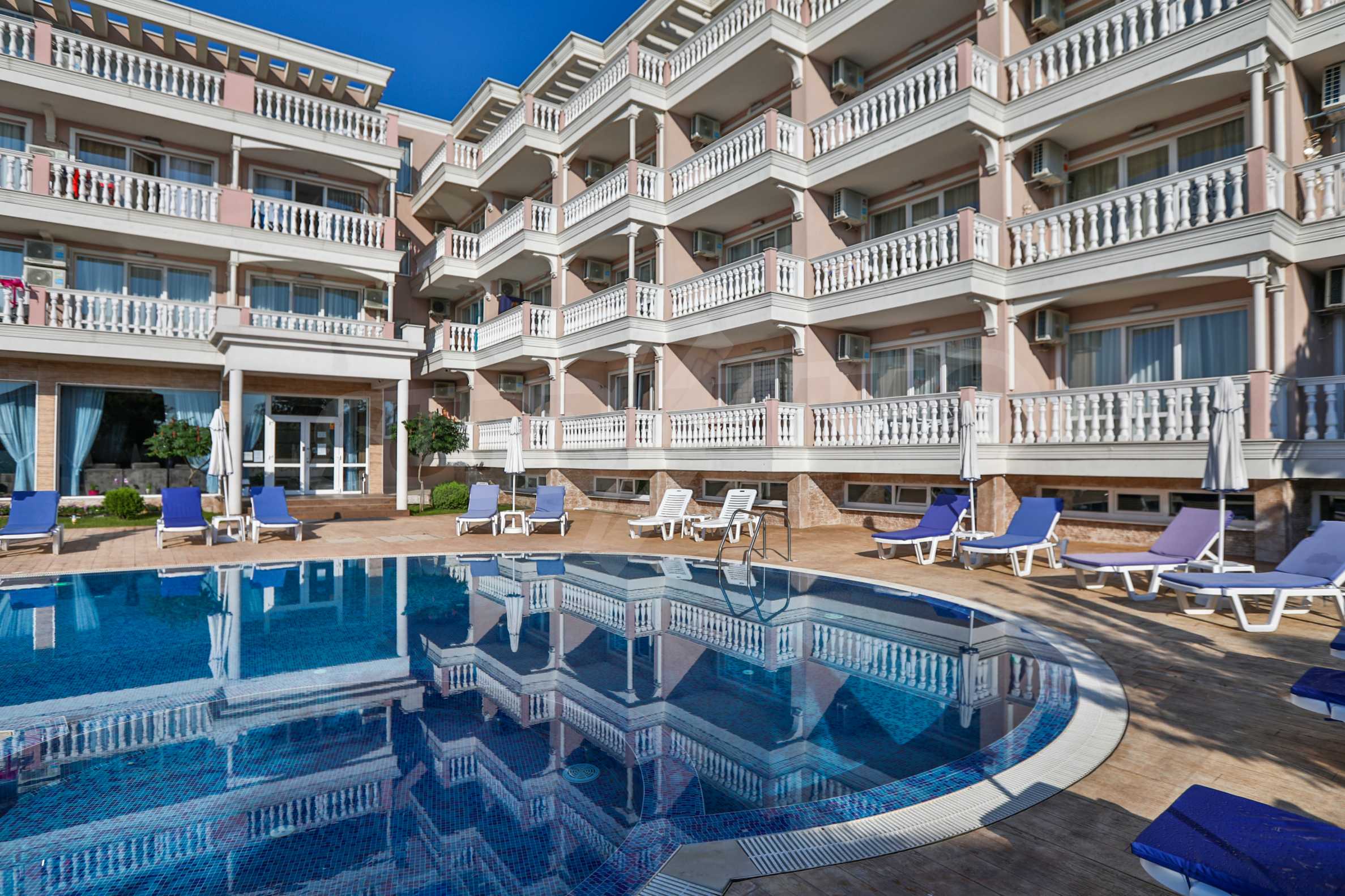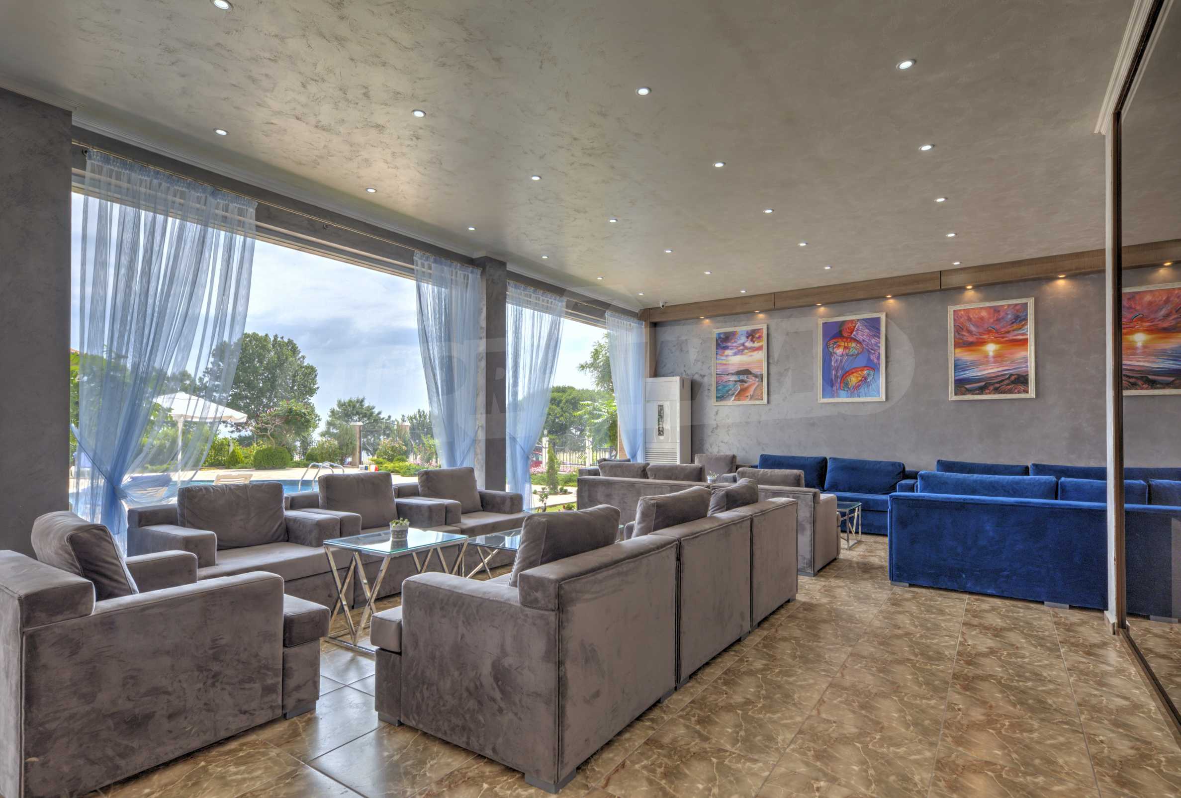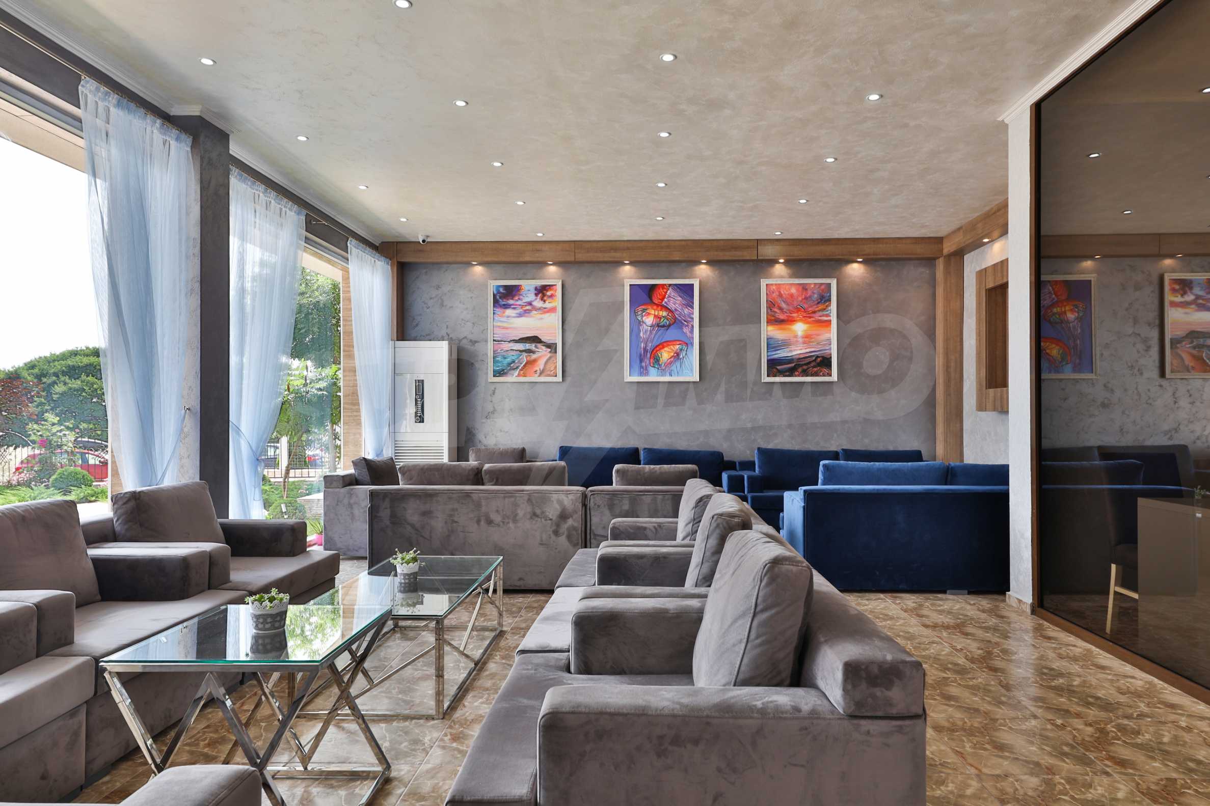 Das Gebäude zeichnet sich durch seine raffinierte und elegante Architektur mit großzügigen Terrassen mit Balustraden aus. Es ist auf die Meeresküste ausgerichtet und bietet unglaubliche Ausblicke auf das Meer und den Strand. Es gibt alle notwendigen Annehmlichkeiten für einen angenehmen Urlaub auf dem Territorium: Schwimmbad, Tiefgarage und Restaurant, Sicherheit, Videoüberwachung und Rezeption.