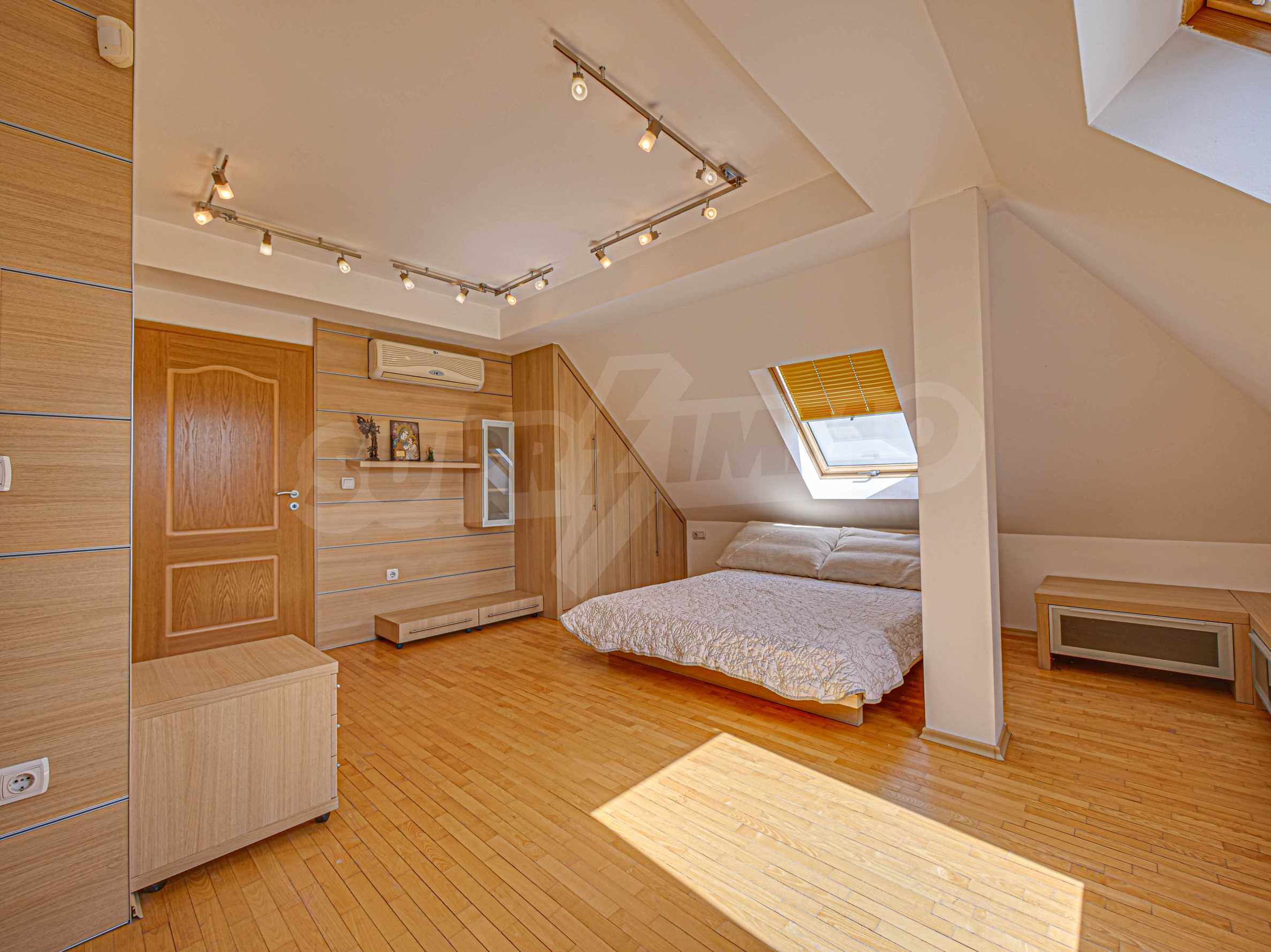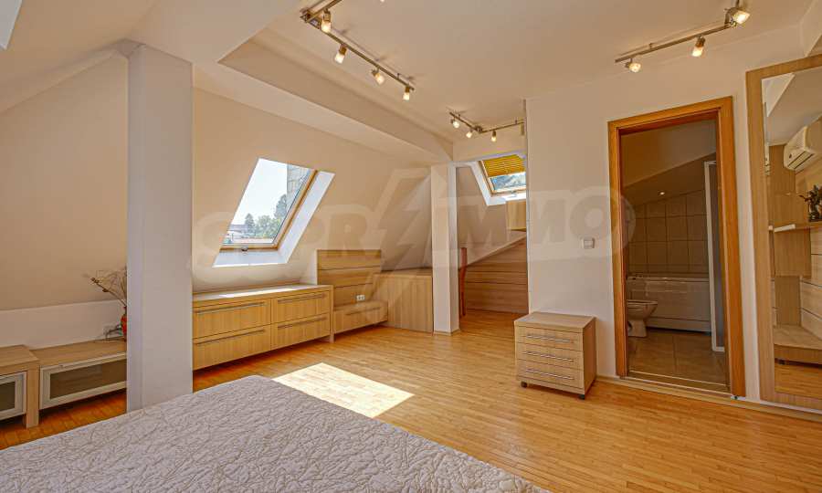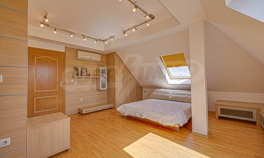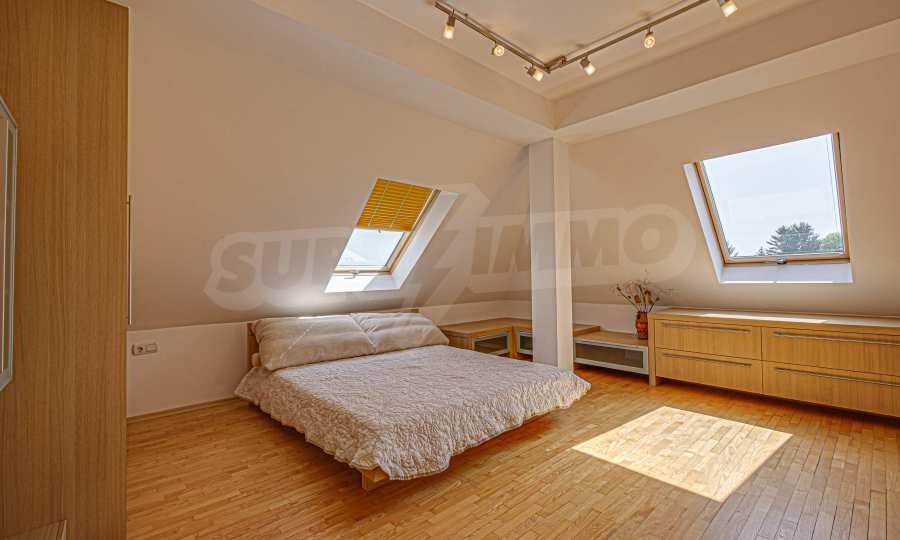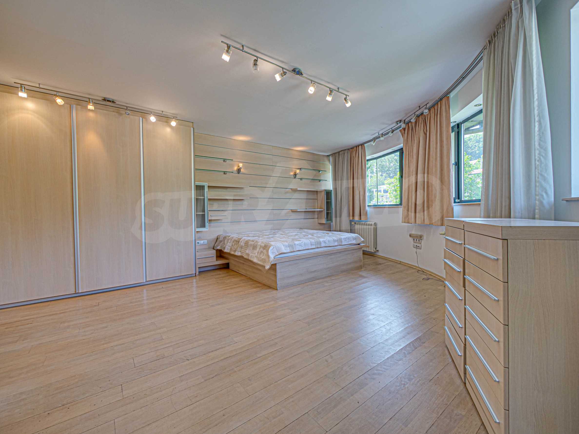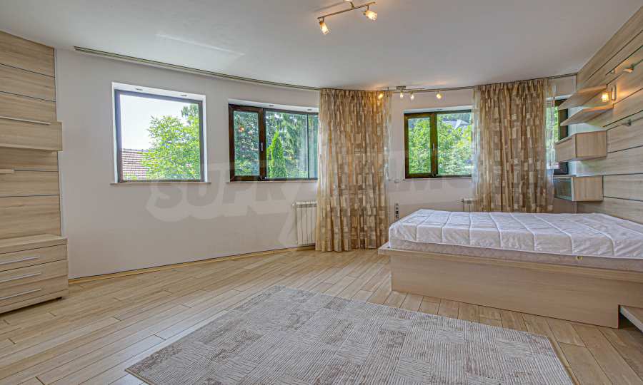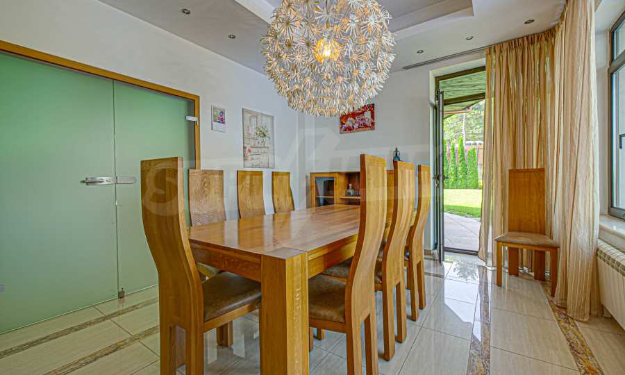 Das Anwesen zeichnet sich durch einen einzigartigen Bergblick und einen großzügigen Garten mit Swimmingpool und Grill aus. Zukünftige Mieter können den Komfort und die Privatsphäre in einer der besten Gegenden der Hauptstadt genießen. Das Haus erstreckt sich über drei Ebenen und verfügt über hohe Decken, geräumige Zimmer mit großen Fenstern, die viel natürliches Licht und einen atemberaubenden Blick auf Vitosha und den wunderschön angelegten Garten bieten.