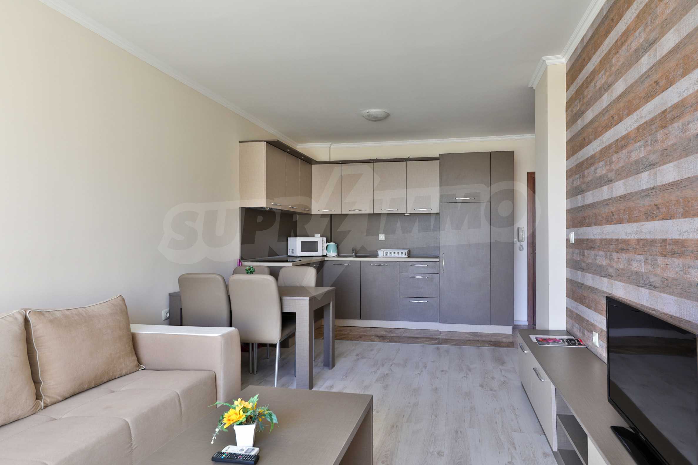 Wir präsentieren ein Apartment mit einem Schlafzimmer zum Verkauf in einem neuen, eleganten Komplex mit Pool und Spa-Bereich, nur 160 Meter vom zentralen Strand in Sveti Vlas entfernt.