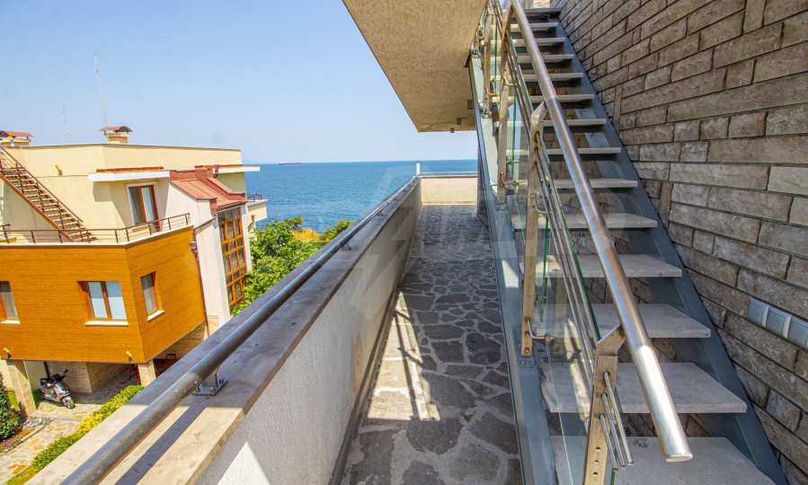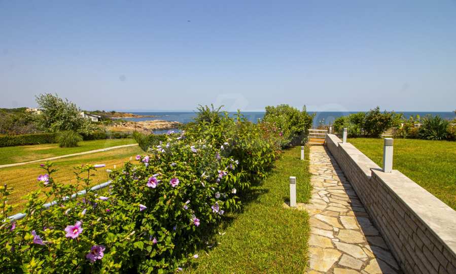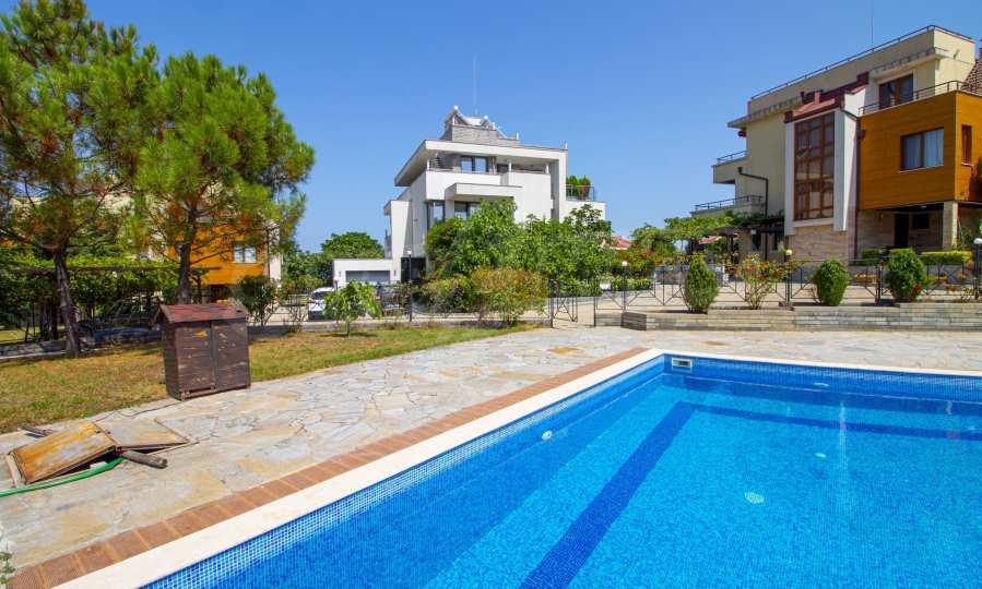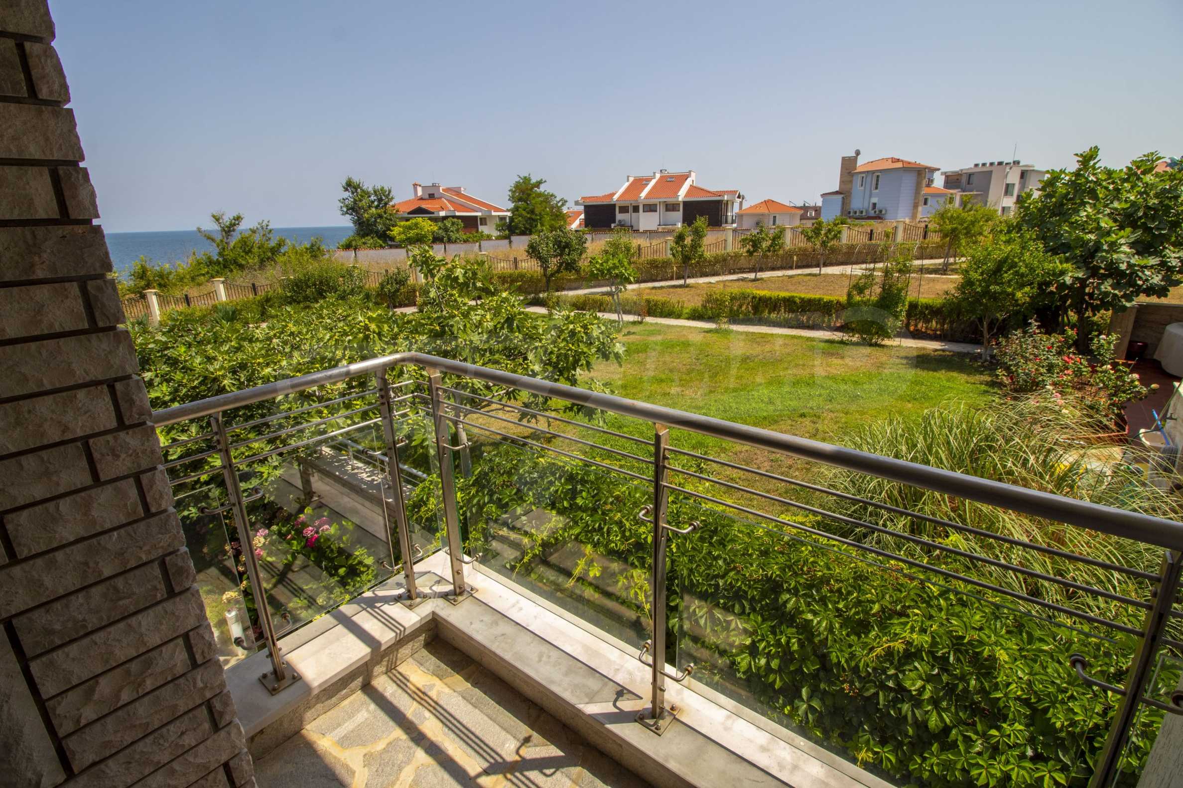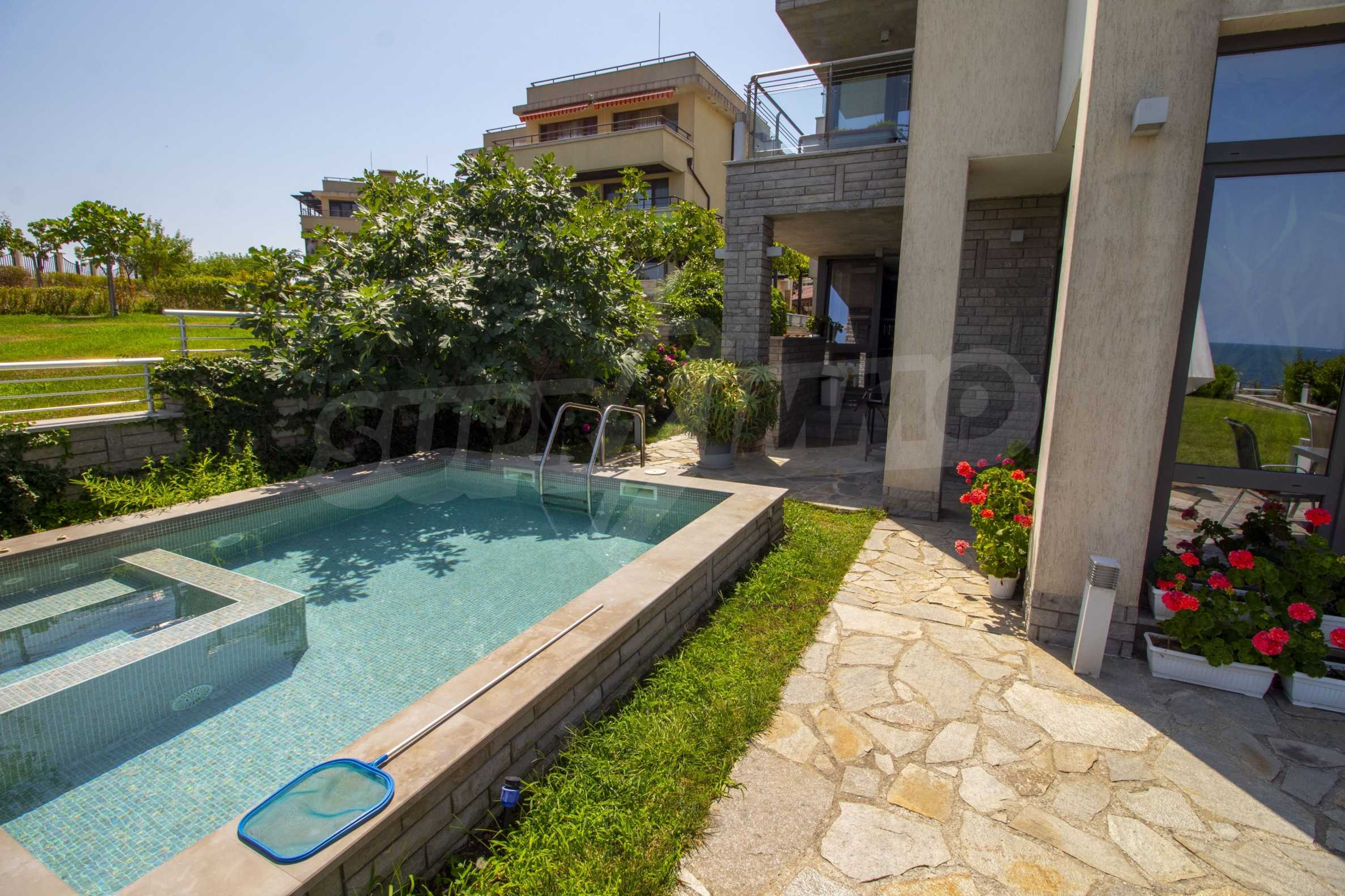 Das moderne Haus, das wir zum Verkauf anbieten, ist Teil eines erstklassigen Häuserkomplexes mit Swimmingpool und Annehmlichkeiten, der sich in erster Meereslinie in Chernomorets befindet.