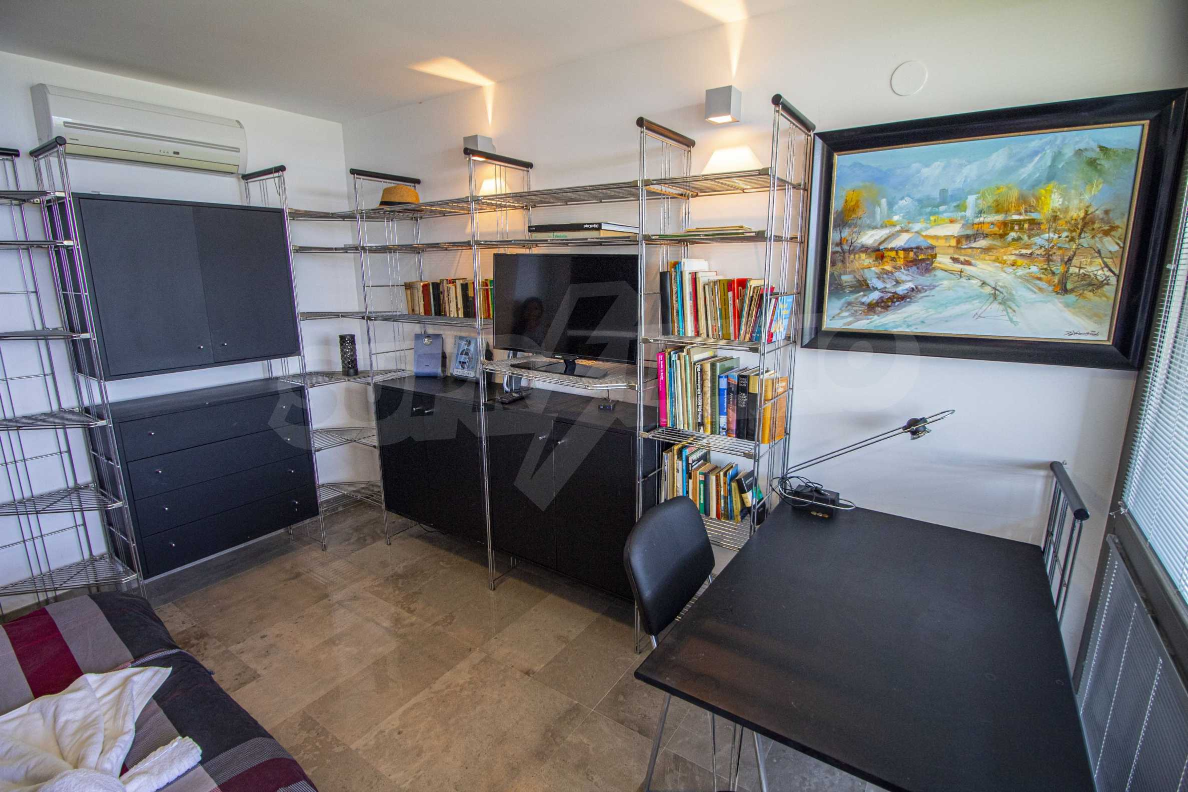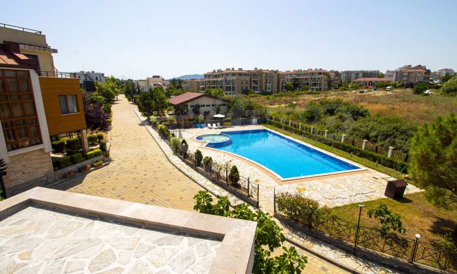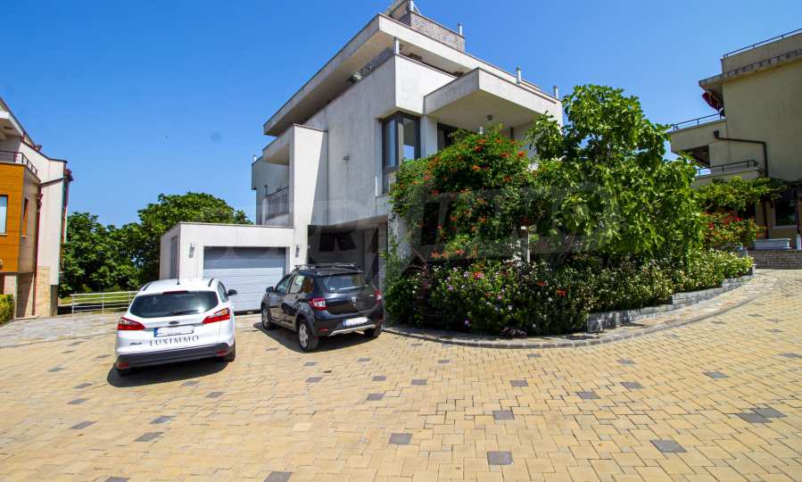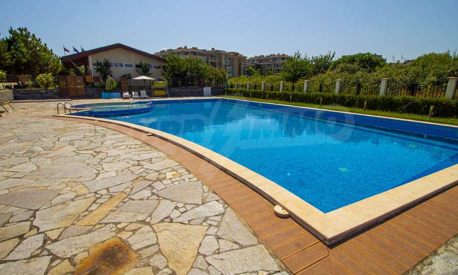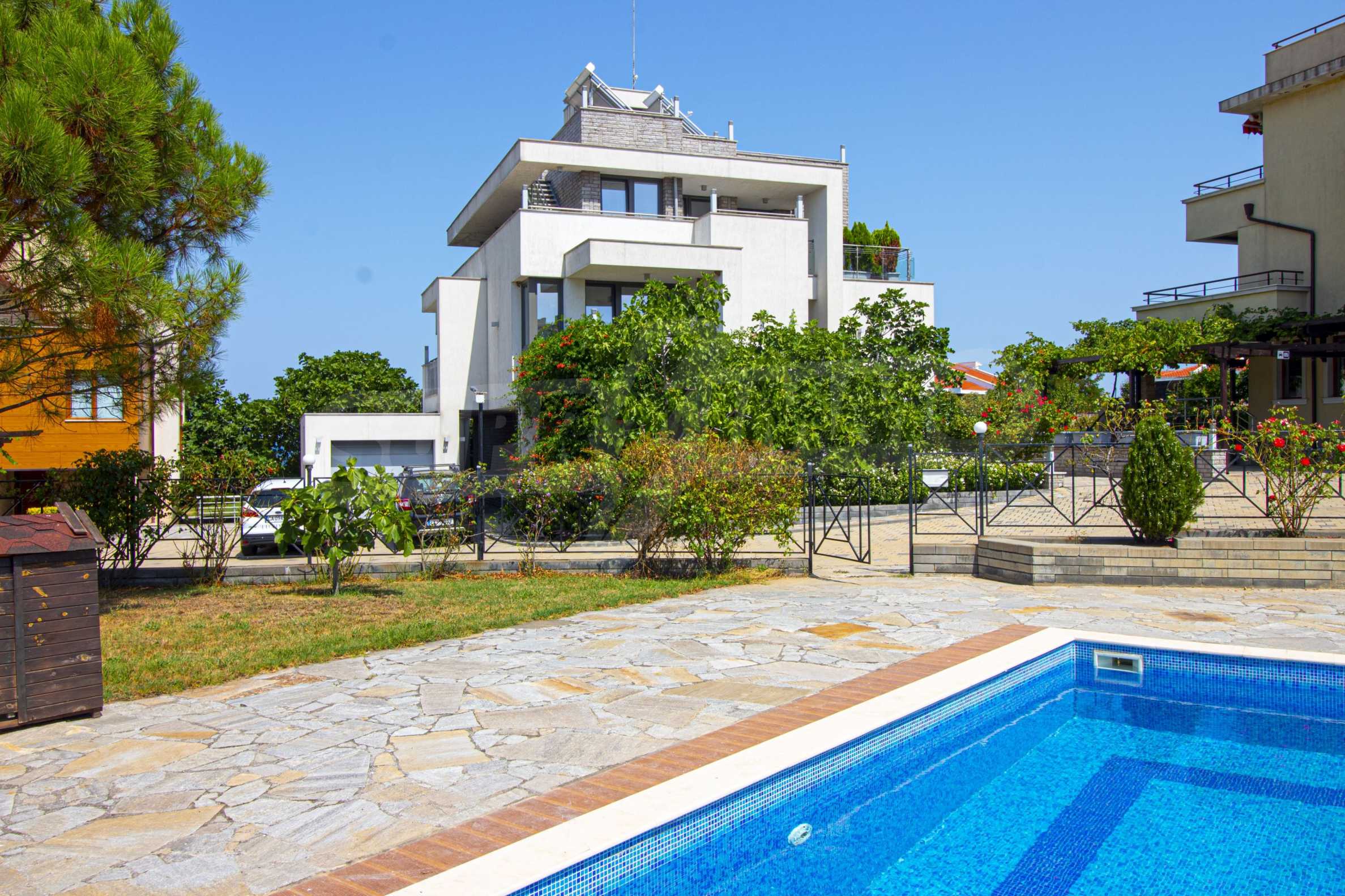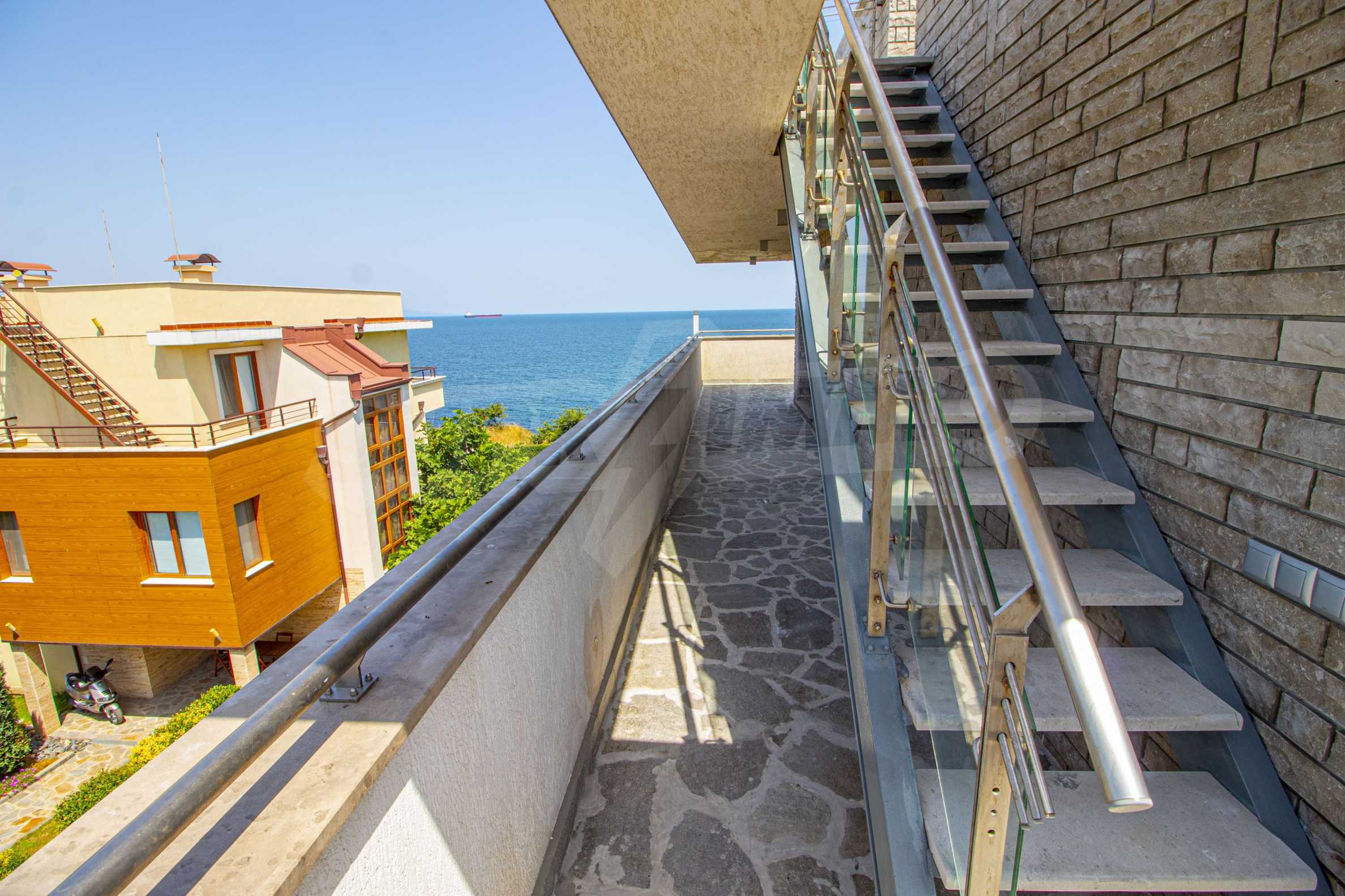 Das moderne Haus, das wir zum Verkauf anbieten, ist Teil eines erstklassigen Häuserkomplexes mit Swimmingpool und Annehmlichkeiten, der sich in erster Meereslinie in Chernomorets befindet.