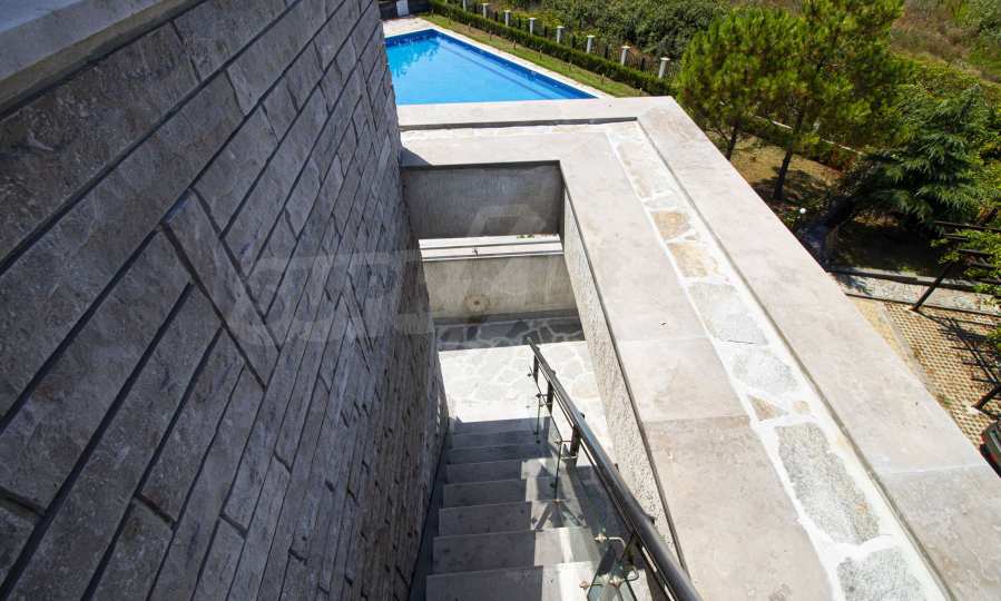 Das Anwesen ist auf 3 Ebenen konzipiert, mit einer Fläche von 480 qm, auf einem Grundstück von 790 qm, umfasst eine Garage, einen separaten Parkplatz, einen Wintergarten und zwei gemütliche Veranden zum Entspannen.