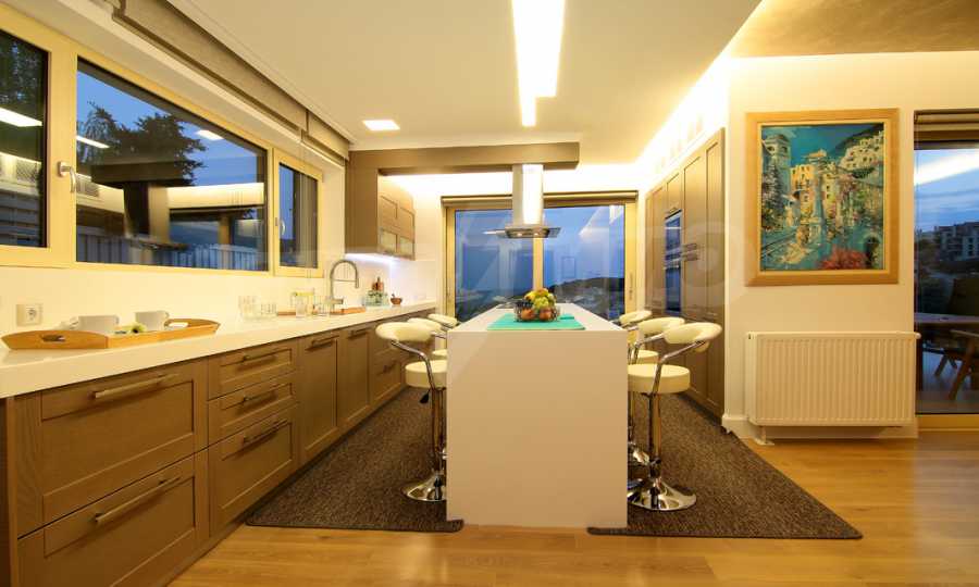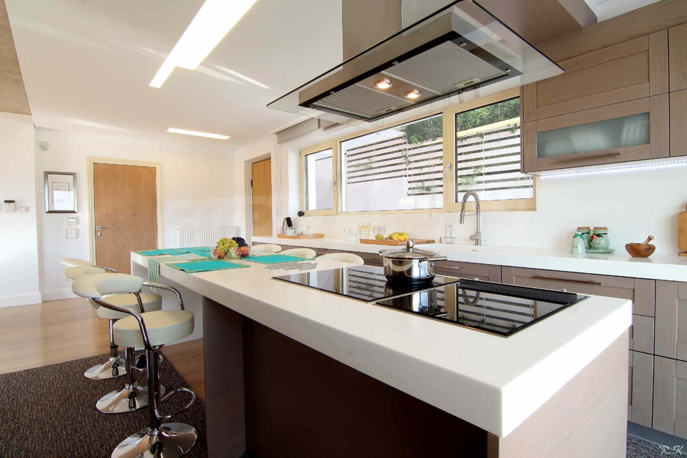 Das Haus verfügt über eine moderne Architektur, die Komfort und Funktionalität vereint, viel Licht und Platz in allen Räumen. Das Anwesen ist mit hochwertigen Materialien ausgestattet.