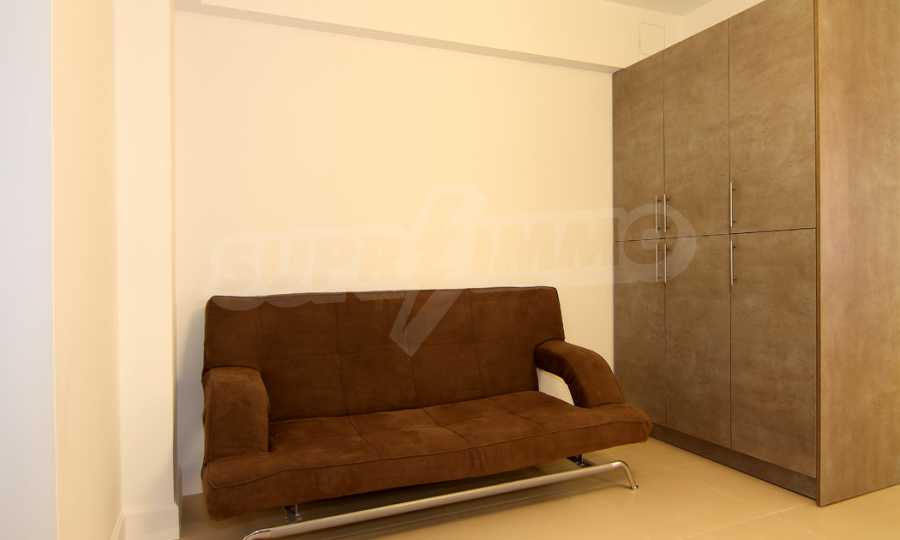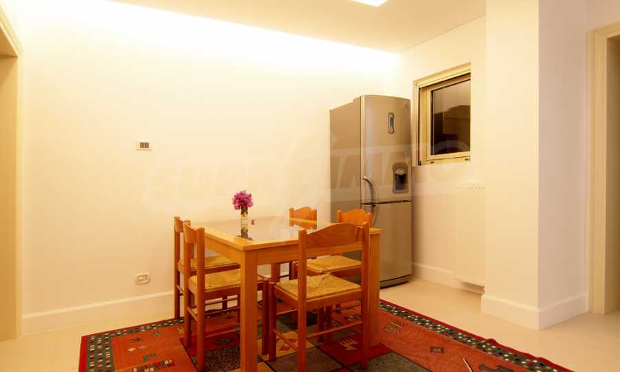 Wohnzimmer mit voll ausgestatteter Küche mit Essbereich;
