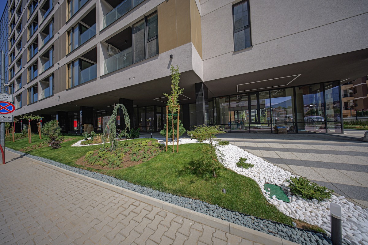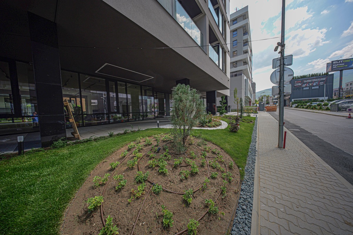 • Die Begrünung und das Bewässerungssystem rund um das Gebäude wurden abgeschlossen. Die letzten Arbeiten im Japanischen Garten stehen noch bevor.