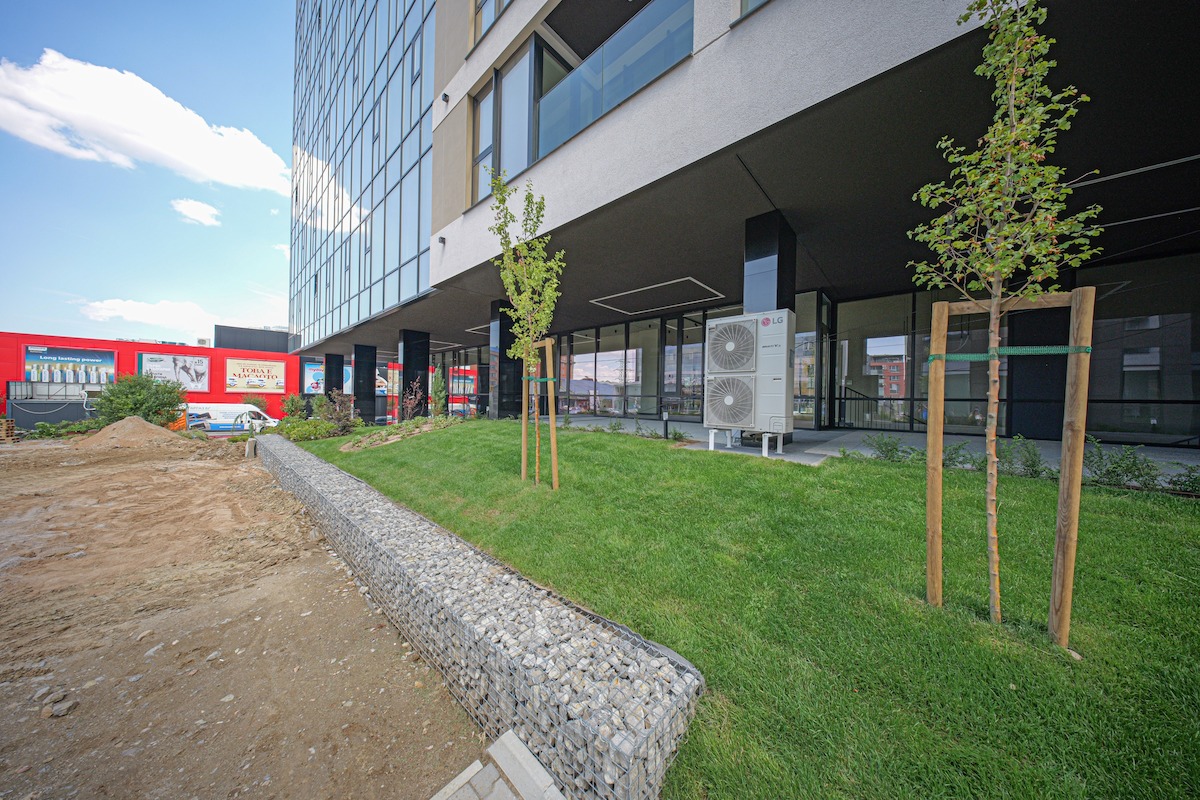 • Die vertikale Planung rund um das Gebäude wurde abgeschlossen.