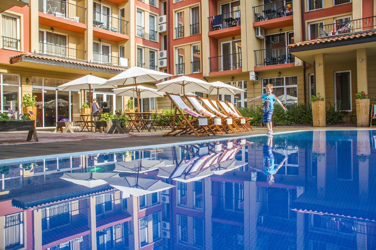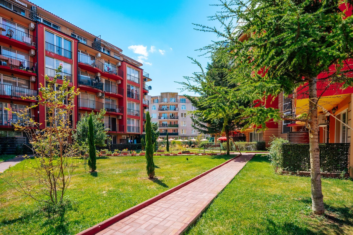 Sunny View Central ist ein geschlossener Komplex mit Ferienimmobilien und vielen Annehmlichkeiten für seine Bewohner, nur wenige Gehminuten vom Cacao Beach und Bedroom in Sunny Beach entfernt. Während der Sommersaison ist der Komplex voll belegt, wobei die Immobilien hier sowohl zur Eigennutzung als auch zur Vermietung genutzt werden.